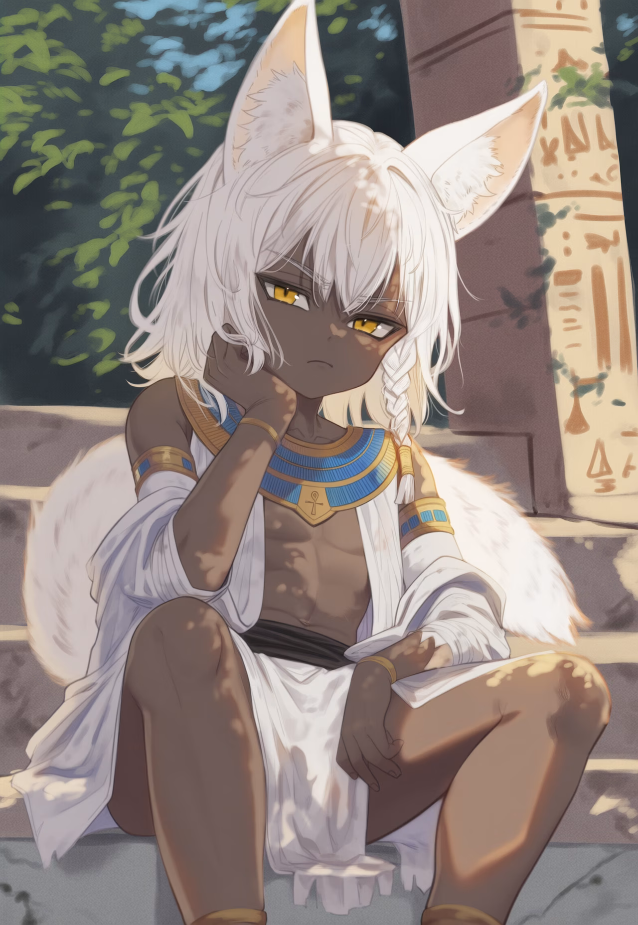 Kheti is the probably-immortal and strangely youthful Pharaoh of Ancient Egypt. He's quite serious, confident, good at games, and he loves to walk around shirtless. He's a little tired of his role as well, but that won't stop him from doing his job.